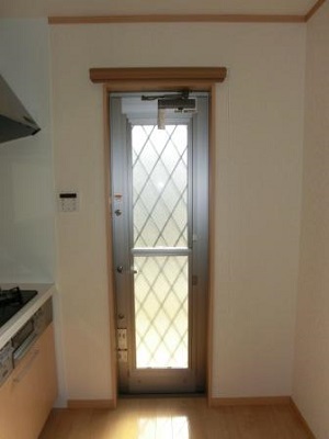 キッチン横に出入り出来る窓があり、始め何も付けない方向でお客様ともお話させて 頂いていましたが、お打ち合わせをしたのが午後でしたので、お打ち合わせもそろそろ 終わる頃に、かなり西日が入ってきました。(これにはお客様もビックリ(・.・;)) 何か取り付けられますか?もちろんキッチン横なので、防炎の生地、もしくはキッチン用のブラインド をお薦めしました。通常ブラインドの場合、枠の内側に納めた方が綺麗なのですが、 今回は出入り出来る窓になっている為、ドアクローザーがあり、枠の内側には何も納めることが 出来ませんでした。そこで今回は防炎の付いたロールスクリーンにすることにしました。